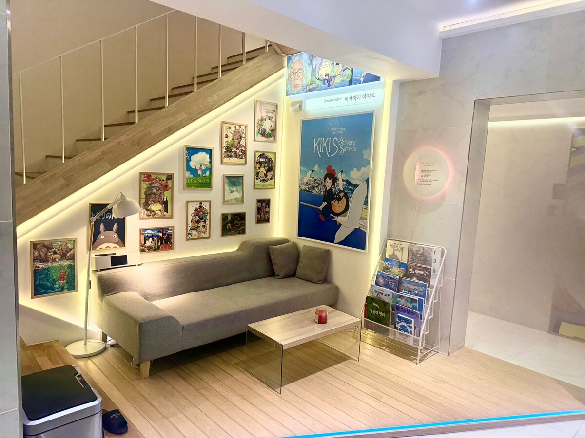 지브리 감성을 담은 아기자기한 감성숙소 입니다 북유럽풍과 일본 모던료칸의 인테리어를 믹스매치해 아늑한 침실을 자랑합니다 1층 공용카페는 무료 이용 가능하며 무료조식서비스가 가능합니다 (토스트, 시리얼, 우유, 라면) It's a cute and sentimental dorm with Ghibli's emotions Mix and match the interior of the Nordic style and the Japanese modern ryokan It boasts a cozy bedroom You can use the public cafe on the 1st floor for free Free breakfast service is available (toast, cereal, milk, ramen) 무료조식 서비스 (월요일, 토요일 휴무) 메인반찬3, 기본반찬 5가지, 밥, 국 위치: 맨션6 호텔 지하식당 (CU골목 안 직진 후 gs편의점에서 우측 10m) 도보 2분거리