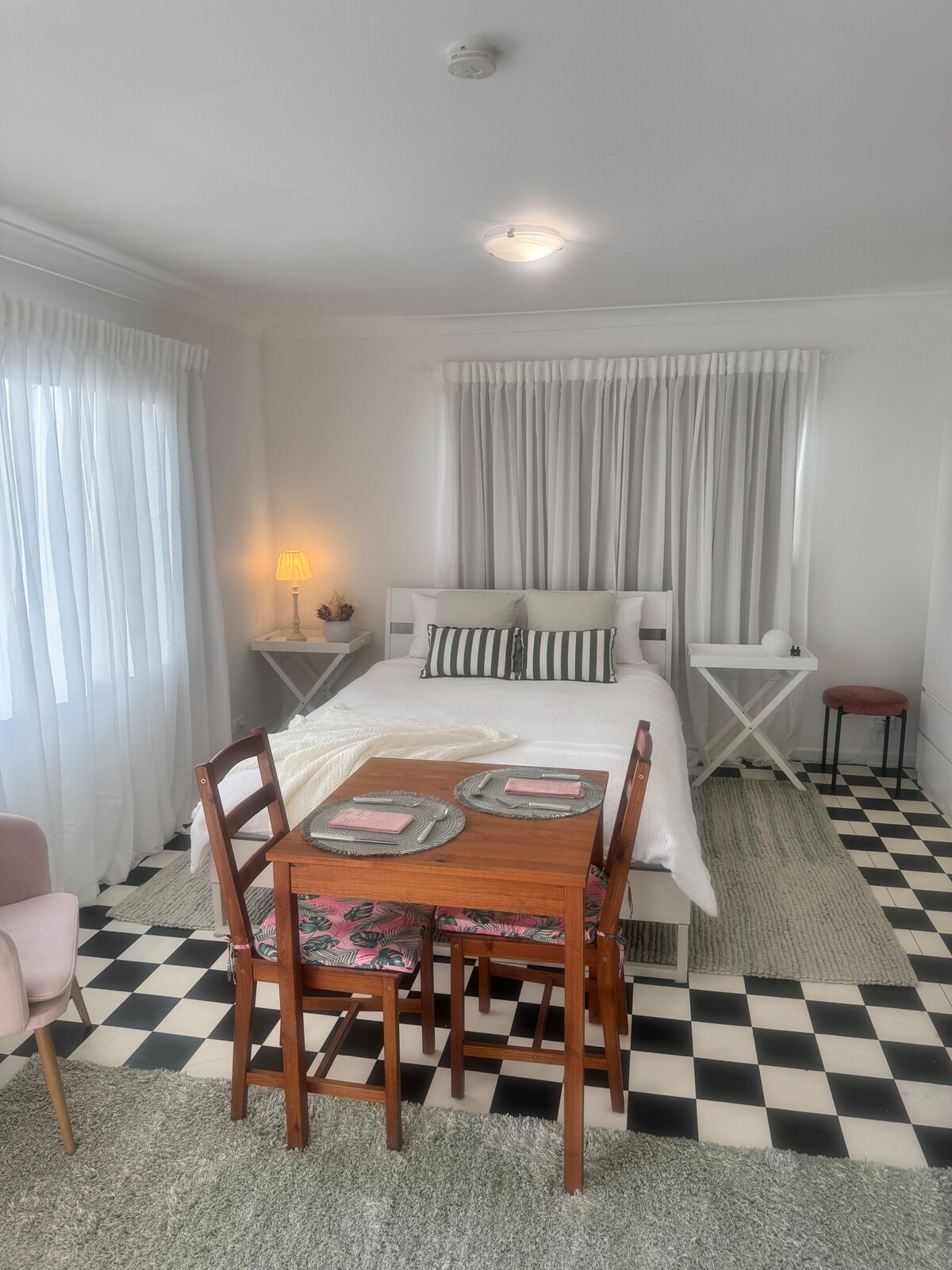 A perfect space just for one, a couple or small family with an infant. Ideal for travellers, short stays, for business people and local vistors. When you don’t need extra rooms to be on holdiays or to rest up and be comfortable. Little Loralyn Studio is a fully equipped small place with a private enclosed courtyard and outdoor area, located across the road from the waterways of St Georges Basin. Well behaved pets or one infant may stay upon request, and when added to the booking.