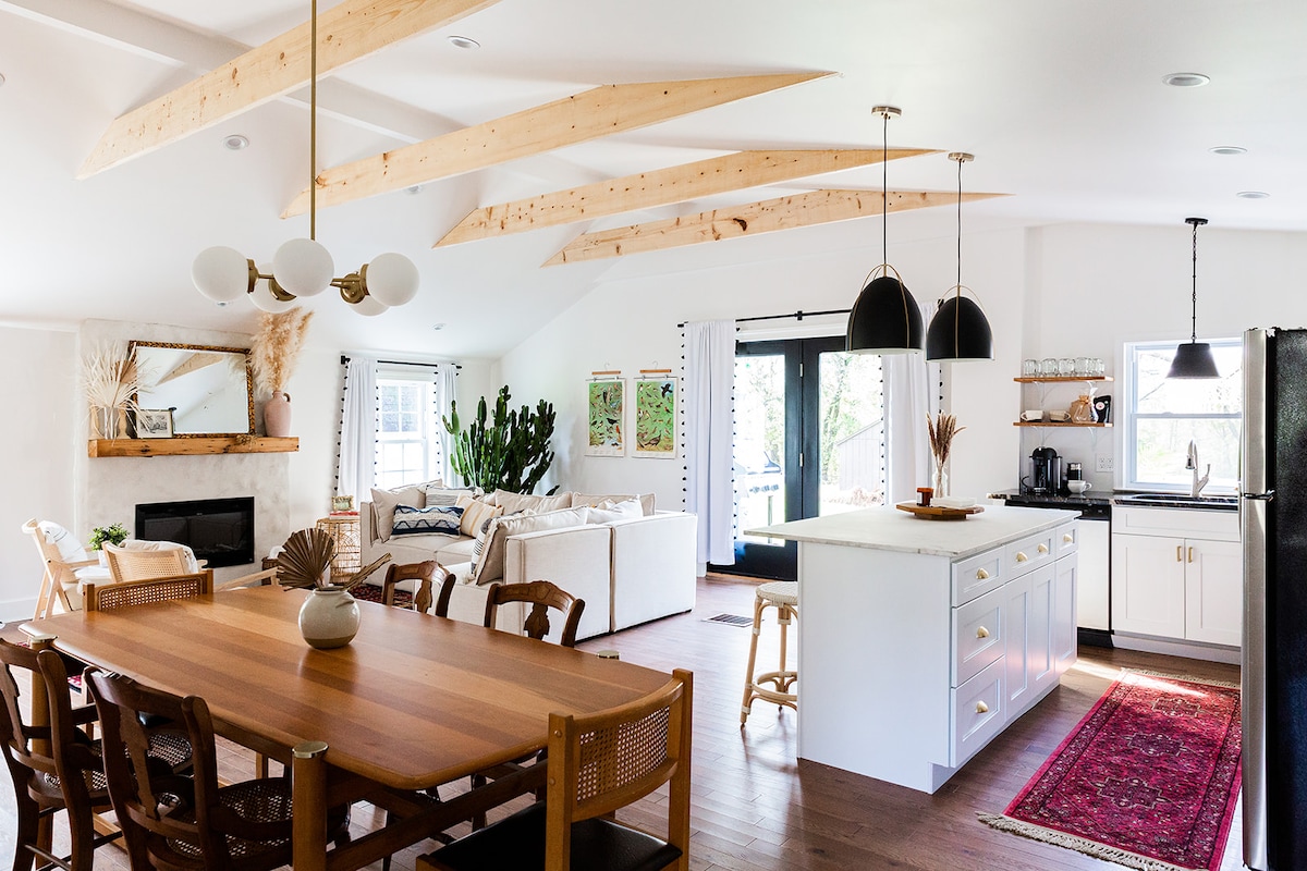 獨特的70年代風格的房子,完全改造+改造成明亮+通風的現代豪華平房,並帶有波西米亞風格。裝飾融合了新穎和現代風格,以及一些精心挑選的復古作品,以展現個性。 當您在鄉村時,距離蘭卡斯特市(Lancaster city)和它提供的所有服務僅3英里,距離斯特拉斯堡(Strasburg)和阿米什鄉村(Amish country)僅15分鐘。
