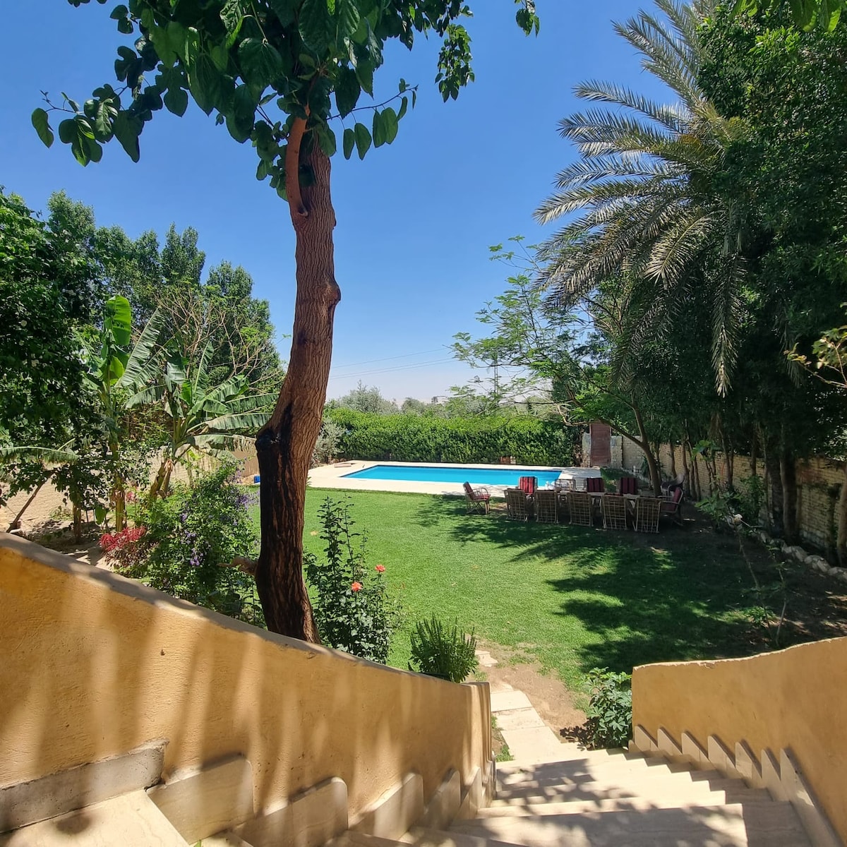 فيلا مميزة في الفيوم، مكان هادئ وسط الطبيعة بعيد عن الزحمة. تحتوي على حمام سباحة خاص وحديقة جميلة، مثالية للاسترخاء وقضاء وقت ممتع مع العائلة والأصدقاء. قريبة من الأنشطة السياحية في الفيوم وتوفر أجواء هادئة ومريحة.
