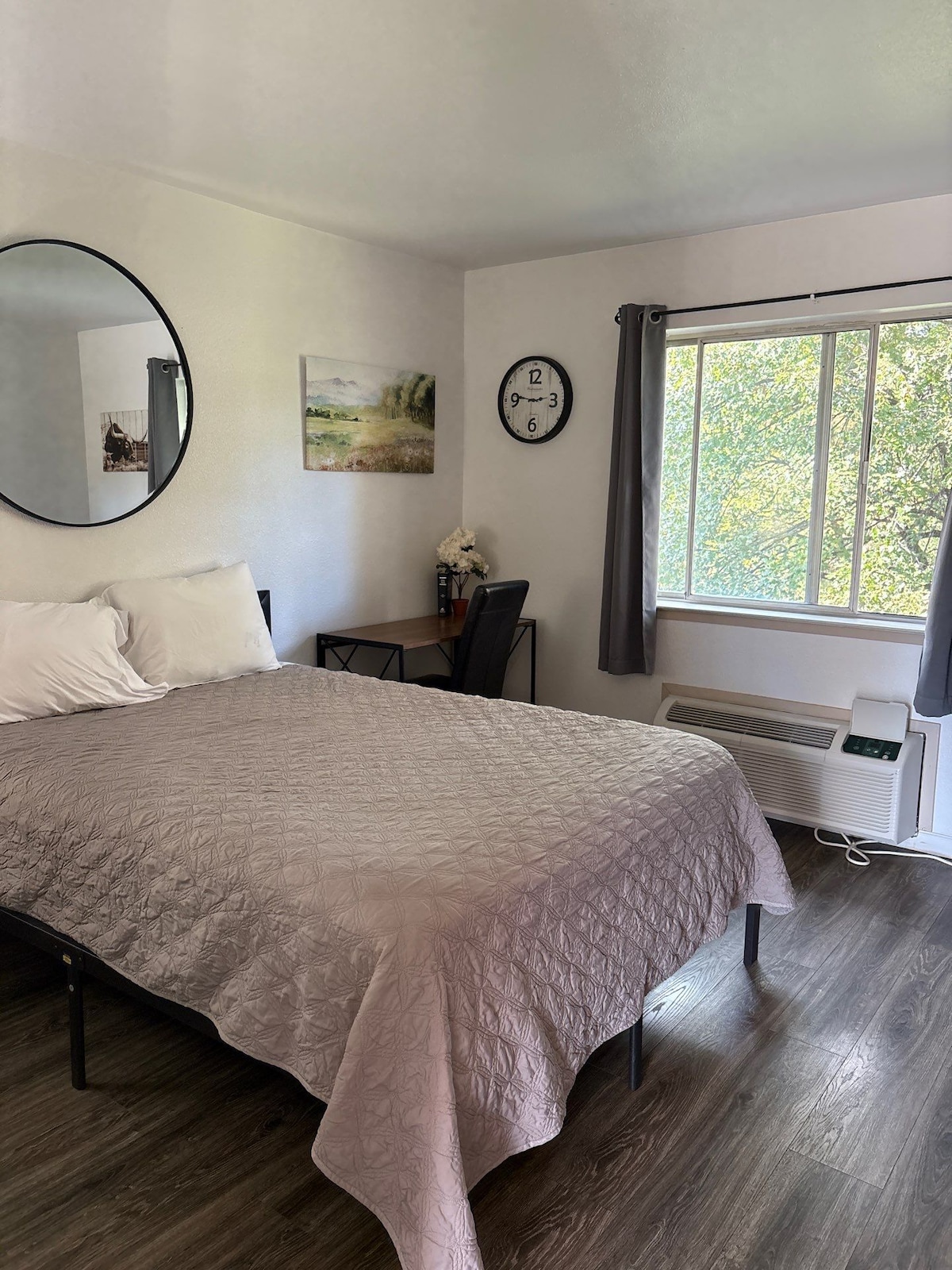 Newly remodeled large 2 bedroom 1 bathroom suite in a historic roadside motel in the heart of Oroville, CA. Perfect for large groups or long stays. Have all the comforts of home while on the road. Bright and airy, comfortable beds, private access with parking right in front of your room.