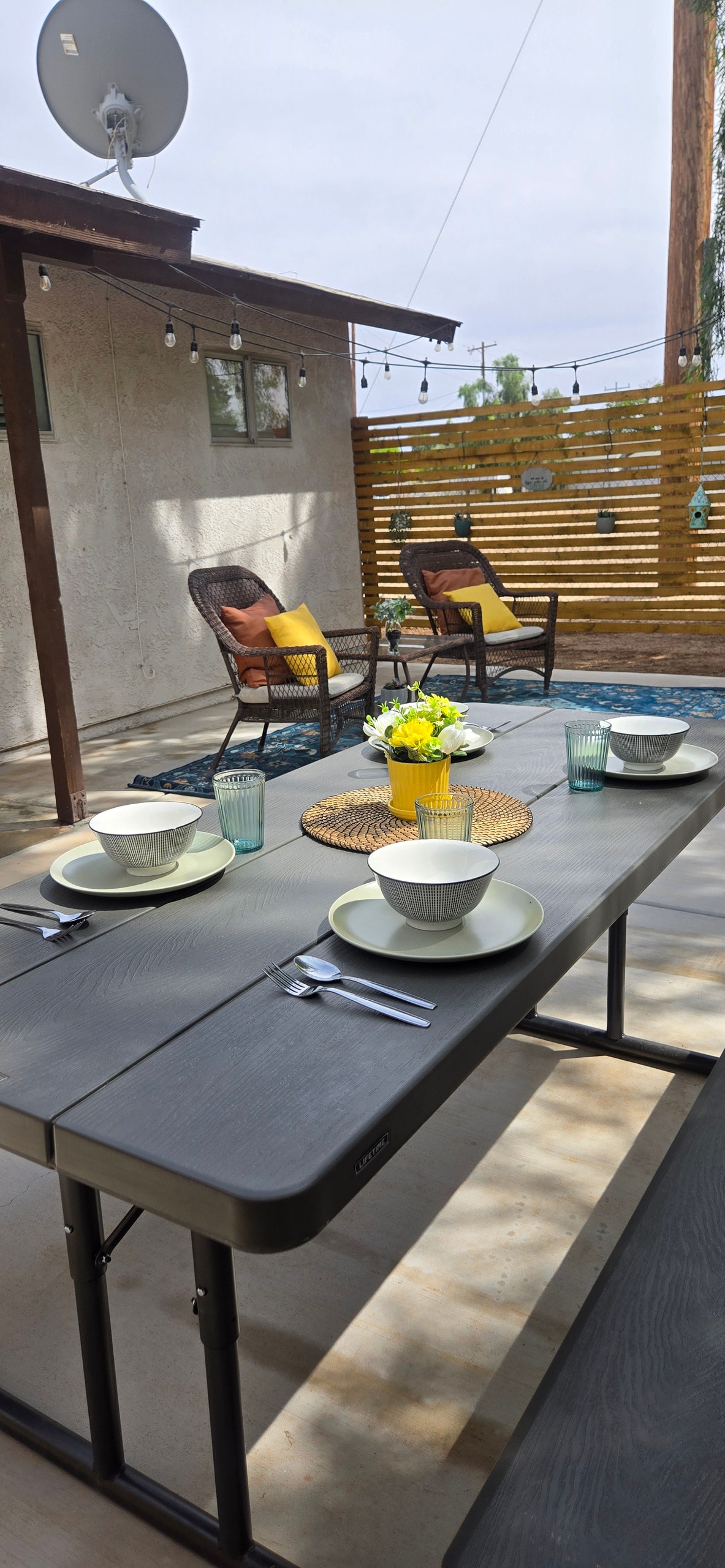 美麗獨特的西班牙風格房源 自 1925 年以來,這座令人驚豔的西班牙風格房屋一直是亞利桑那州尤馬豐富歷史的一部分。 這間房源最近剛剛翻修,設計充滿活力、色彩繽紛,還有一個鬱鬱蔥蔥的花園,非常適合與家人一起放鬆和共度時光。 這間房源坐落在一個大型的空地上,後院被一個柵欄隔開,與一間迷人的迷你屋(也是 Airbnb 房源)分開。 兩個房源都是完全獨立的,不共用任何空間。
