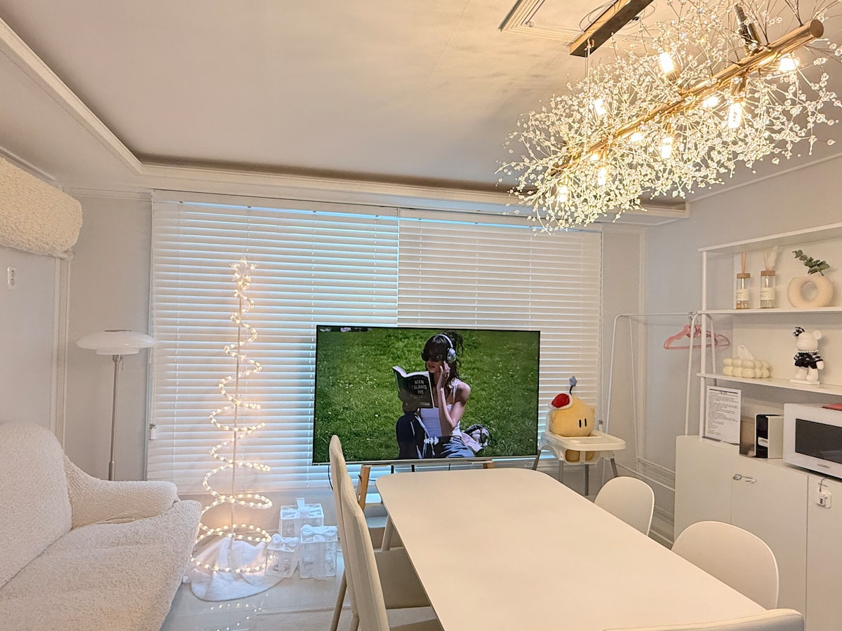 조용하고 편안한 동네에서의 휴식, <정BNB> 여행의 기억이 모두 아름다웠으면 하는 마음을 담아 준비했습니다. 아늑한 도시 대전에서, 따뜻한 추억 만들어 가세요 💗 ✨ 위치 - 용문역 도보 15분 - 롯데백화점(성심당) 도보 20분 - 은행동 으능정이거리 차량 15분 - 한화생명볼파크 차량 20분 🚗 주차 - 숙소 1층 최대 2대 주차 가능 🏠 숙소 소개 🏠 1️⃣ 침실 (2개) - 퀸사이즈 침대 1 (+스탠바이미) - 싱글 침대 2 2️⃣ 화장실 (2개) - 샴푸, 트리트먼트, 바디워시 - 폼클렌징, 칫솔, 치약 - 수건 - 드라이기,고데기 3️⃣ 거실 - 65인치 스마트 TV - 넷플릭스 / 유튜브 프리미엄 - 6인용 테이블 & 소파 4️⃣ 주방 - 냉장고, 가스레인지, 전자레인지, 전기포트, 정수기 - 각종 조리도구 및 식기 🎁 from < 정BNB > - 다양한 보드게임 구비 - 멀티탭, 핸드폰 충전기 - 시리얼, 우유 제공 - 캡슐 커피머신도 있어요 ☕️