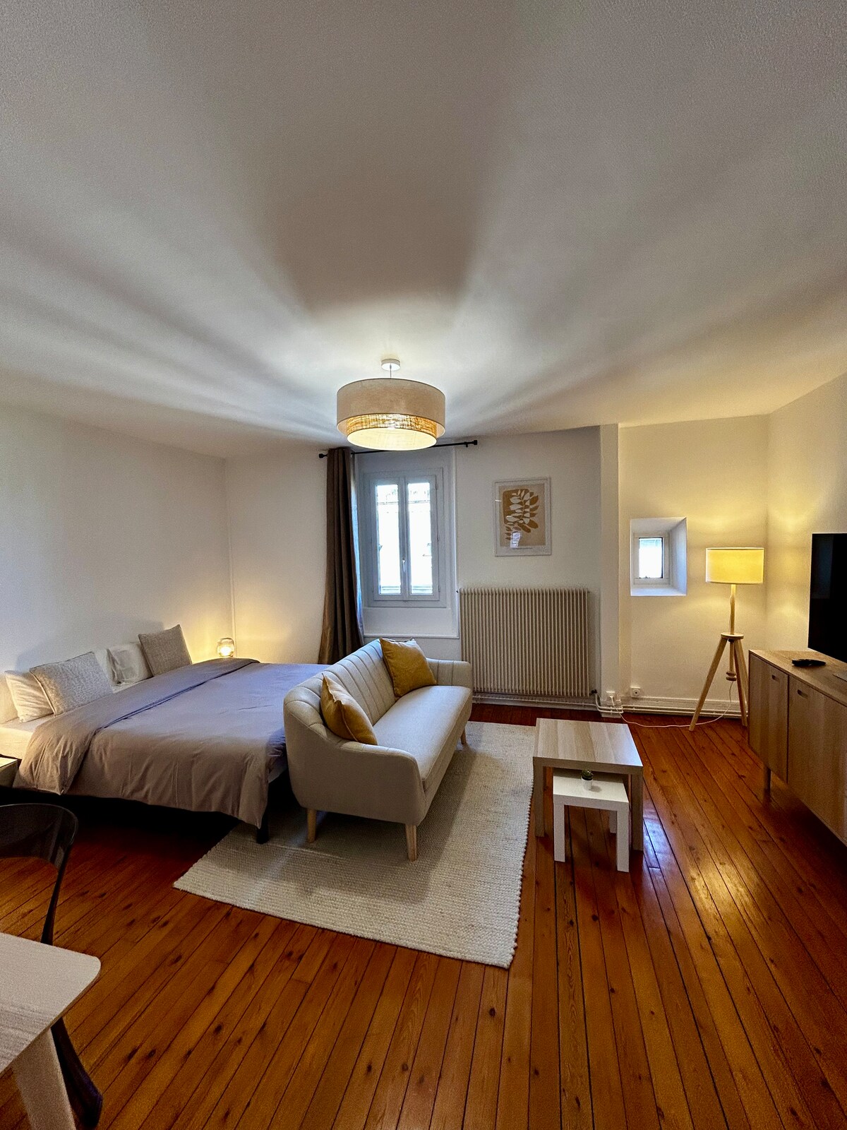 地理位置優越,距離火車站和電車站 100 公尺。我們的房源非常適合想要探索這座城市的旅客,乘坐電車 15 分鐘即可抵達著名的勒芒 24 小時賽道,步行 10 分鐘即可抵達市中心和勒芒舊城區的繁華地帶。 我們的空間之所以獨一無二,是因為它位於一個充滿活力的共同工作空間上方。作為客人,您將享有使用此共享工作場所的特殊權限。