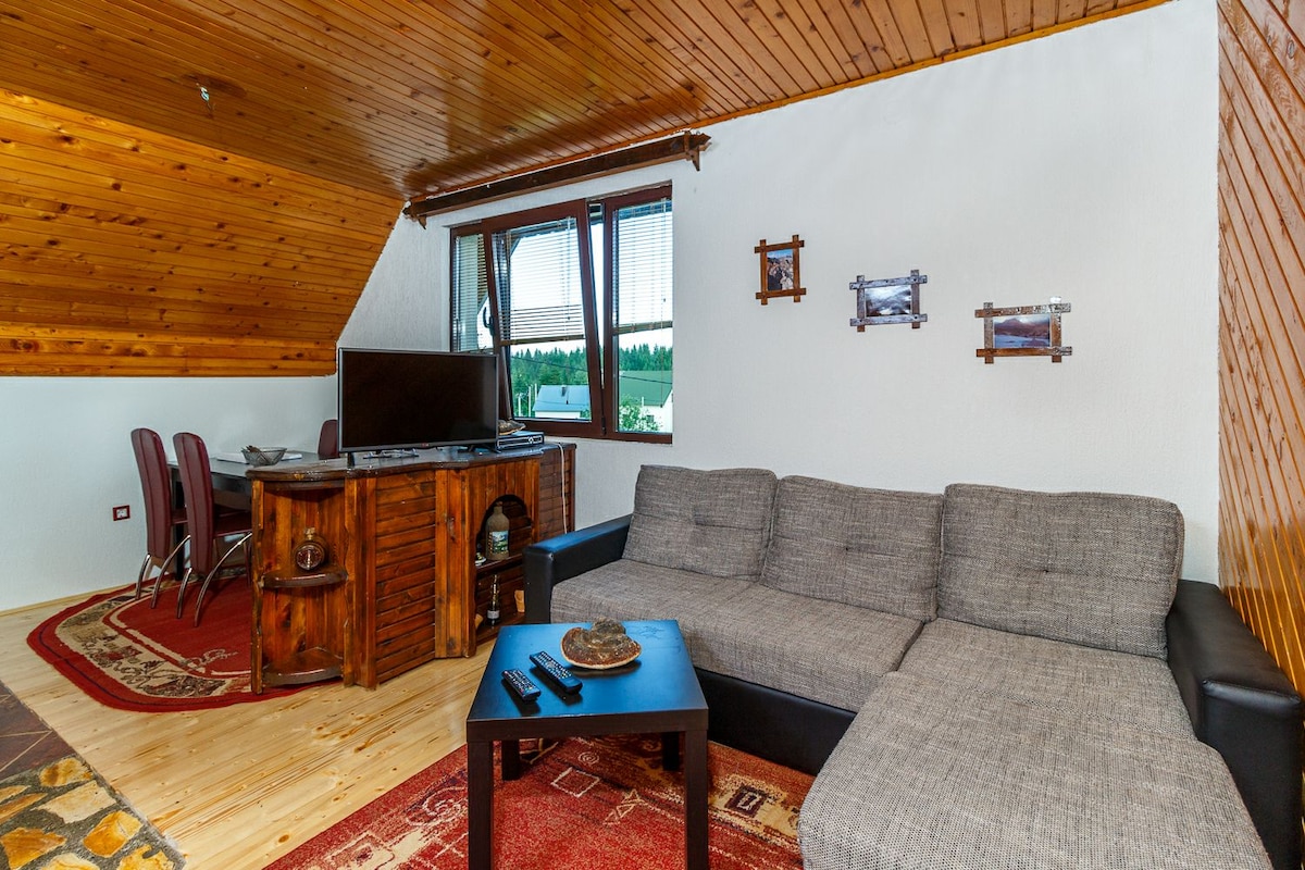 在這間迷人的木製小木屋中放鬆身心,距離杜米托爾國家公園和黑湖僅幾分鐘路程。 小木屋非常適合情侶、家庭或小團體入住,室內溫馨、質樸,配有開放式起居區、設備齊全的小廚房和舒適的樓上臥室。 享受寧靜的環境、新鮮的山間空氣,以及窗外的美景。 無論您是徒步旅行、滑雪還是單純放鬆,這間小木屋都是您在Žabljak的完美大本營。