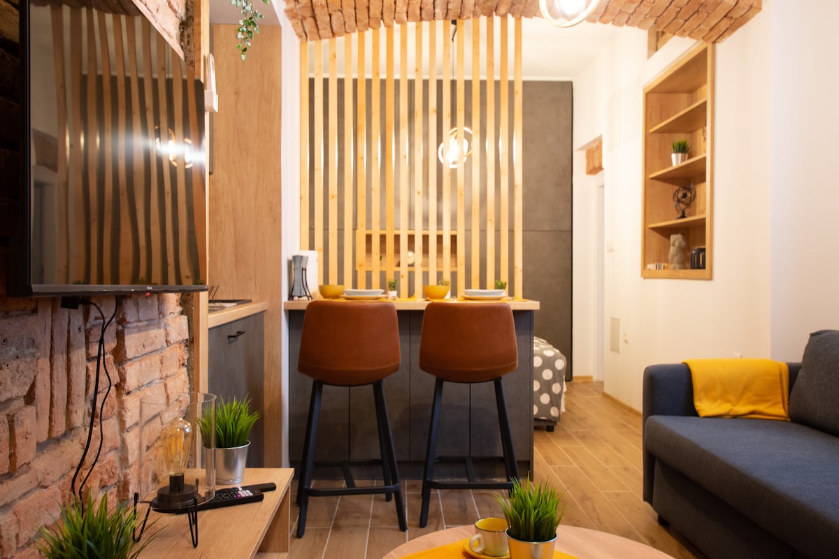 市中心全新優雅公寓,步行不到10分鐘即可抵達主廣場和火車站。位於主街道上安靜的後院,讓您享受安靜的夜晚。有一間配有標準雙人床的臥室、配有電視+ NETFLIX和拉出式沙發(標準雙人床)的客廳、配有馬桶的浴室和寬敞的步入式淋浴間。所有家具和電器都是全新的。免費茶和咖啡、免費毛巾。