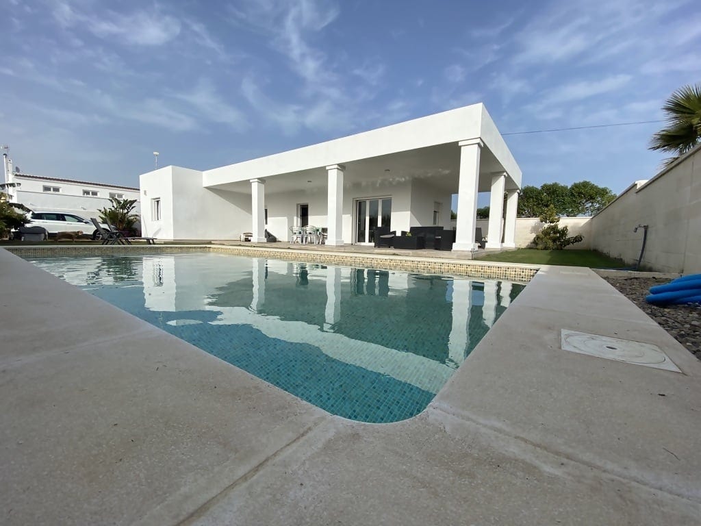Casa con piscina privada, un jardín con cama libanesa, hamacas, barbacoa y zona de césped. La casa consta de 1 dormitorio,baño, cocina con barra americana y en el salón sofá cama. Esta situada en el camino de la chanca a unos 450 metros de la playa (4-5 minutos caminando), es una zona tranquila, sin ruidos y a la vez a pocos minutos de los restaurantes, chiringuitos y una muy buena zona de la playa el palmar. Disponemos de 2 bicicletas gratuitas para el uso de los huéspedes.