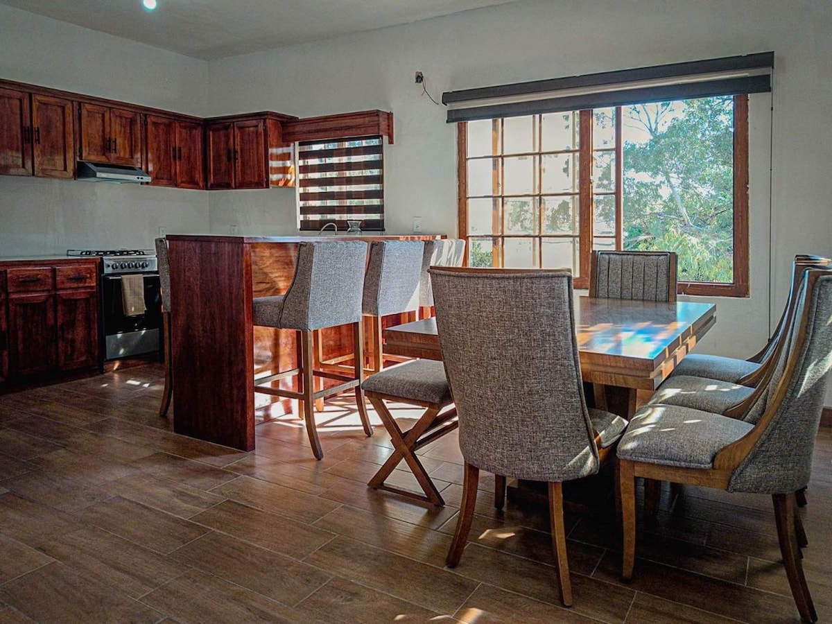 這是一個您可以獨自或與家人一起享受和平與和諧的空間,距離瓜達拉哈拉機場僅5分鐘,非常靠近城市,靠近三匹小馬牧場,在這裡您會感覺像在家裡,非常寬敞和私密,有會議空間,室內外都非常舒適。這是一個在大自然中休息或在家工作的完美空間。