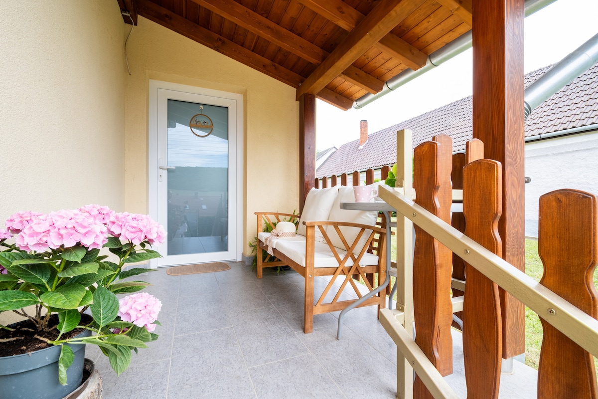 位於巴拉頓湖( Lake Balaton )旁邊的一個小村莊,環境安靜。附近有Stone Sea、Hegyest、Tihany、Balatonfüred ,冬季和夏季都很漂亮。有WiFi、空調。有一個大庭院和俯瞰山丘的露臺。 隔壁有便利商和遊樂場。