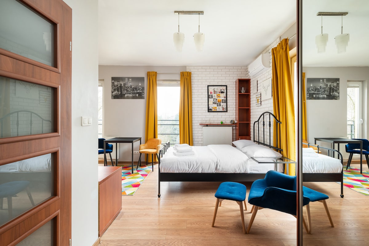 豪華設計、寬敞的單間公寓,在安全的大樓內提供高速WiFi。 位於華沙最受歡迎的景點:哥白尼科學中心、國家圖書館、華沙大學以及Krakowskie Przedmieście (步行區)和靠近維斯瓦河。 非常適合想要探索華沙、充滿活力的夜生活、公園和文化市中心的遊客。 舒適的雙人牀、設備精良的廚房和舒適的沙發。