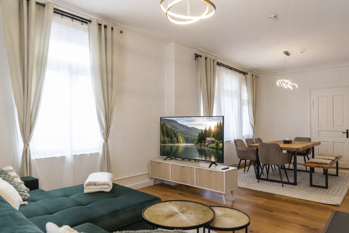 350 平方公尺的統一、高品質設計、豐富的設備、輕鬆的氛圍和舒適的氛圍。 - 免費WiFi - 僻靜的位置 - 高品質的床上用品 - 許多門窗都有防蚊網 - 大多數為瑞士石松木床 -高品質的廚房設備(包括Nespresso咖啡機、洗碗機) -嬰兒床和兒童椅(可應要求提供) - 旅遊稅可作為車票使用 - 在網路上了解更多關於 Schweizerhaus Alpirsbach