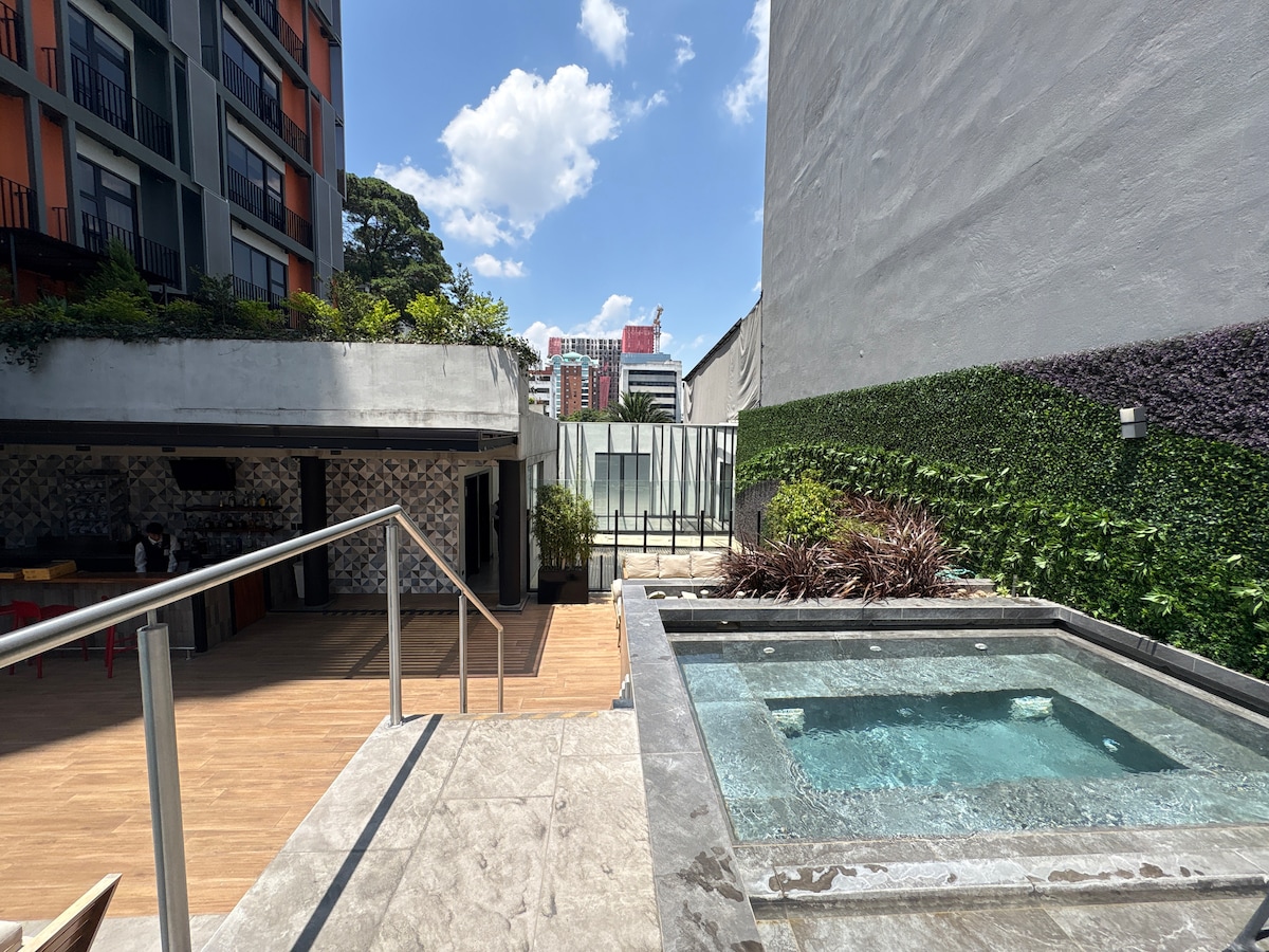 如果您是休閒或商務旅行,您會發現我的房源非常有用! 它非常靠近餐廳、酒吧、商場,就在市內商業區的中間, Zona 10。 此外,您可以在10分鐘內(距離2英裏)往返機場。在觀光或工作一天後,您可以在泳池中放鬆身心,泳池還有按摩浴缸。 沒有鑰匙遺失或退還!此房源使用August應用程式提供安全、無鑰匙入口,請下載:)