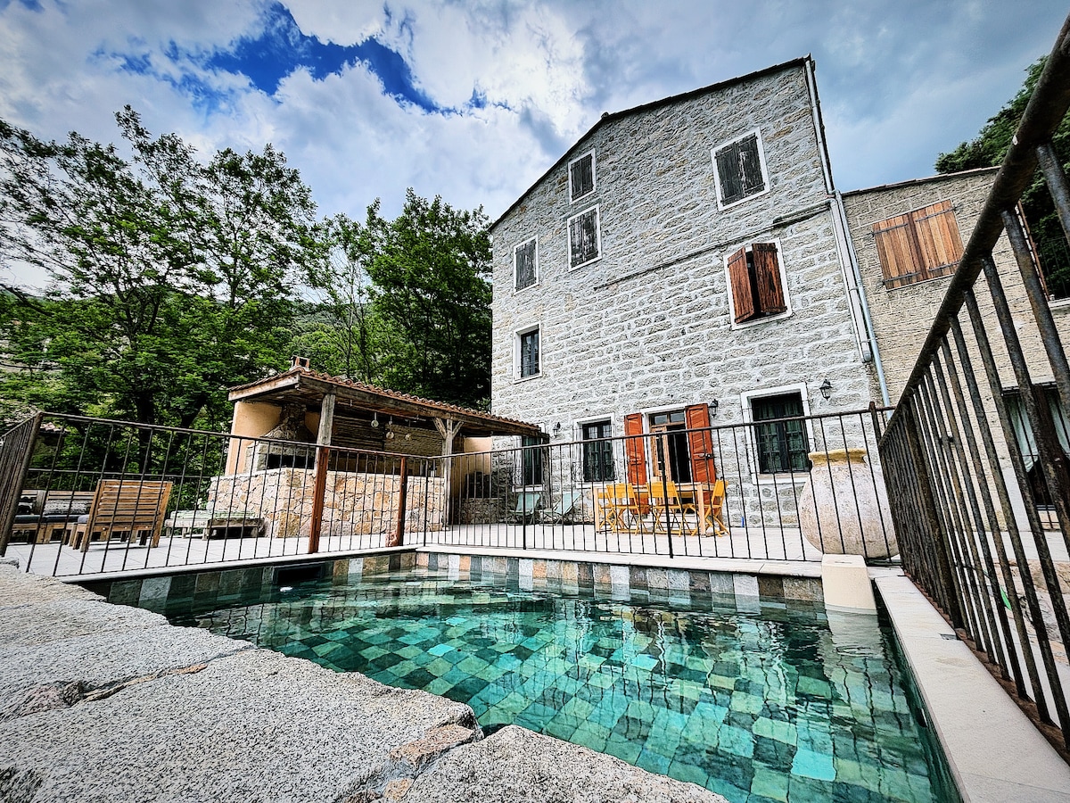 位於村莊的高樓層房屋,分為 2 個獨立出入的住宅。 一樓的出租房間包括一間客廳、餐廳、廚房和一間臥室, 二樓有 2 間臥室和 1 間浴室(淋浴和廁所) 提供床單和毛巾 花園和小型泳池與第二間住宿共用,該住宿也可供出租,配有沙發、躺椅 步行 5 分鐘即可抵達被列為天然游泳池的河流 可在房子前停車