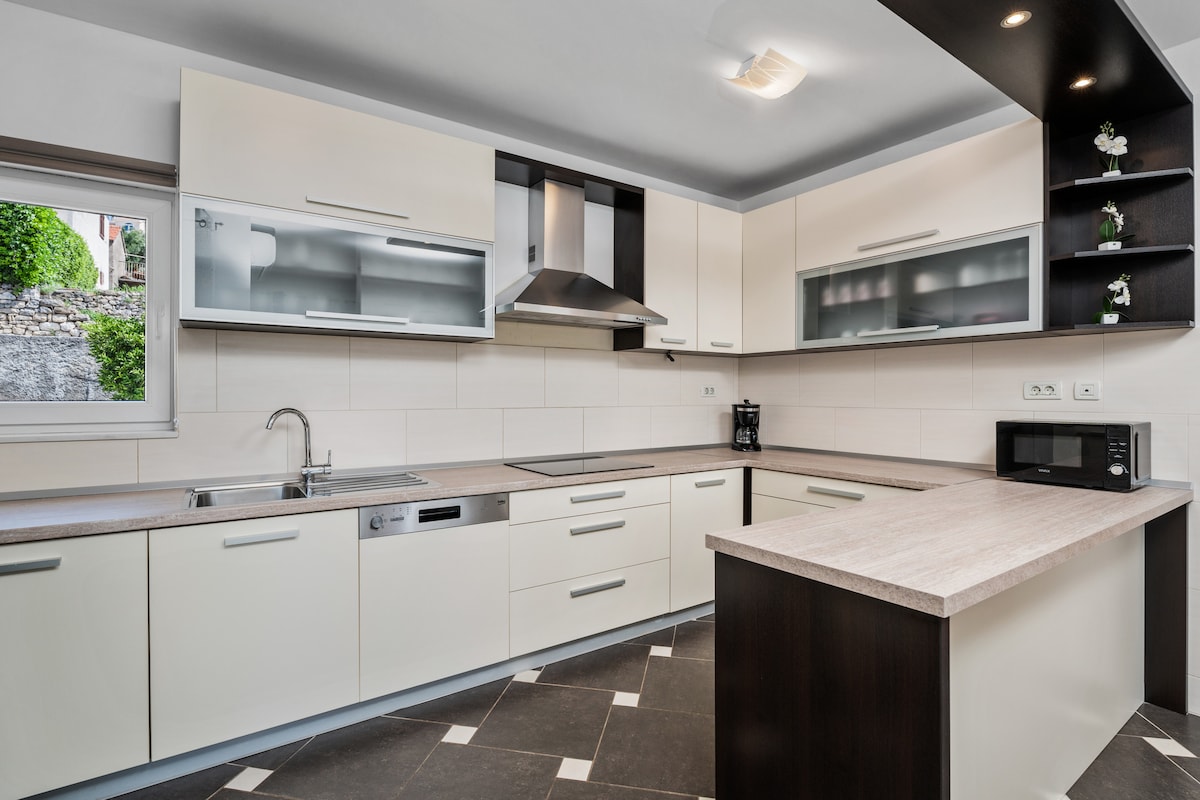 花園景觀別墅(Garden View Villa)距離附近的海灘僅500公尺,可欣賞Stobreč灣和Žrnovnica河口的全景,景觀迷人,但也提供舒適安靜的花園空間,供您私人時刻享用。 這座120平方公尺的半獨立別墅( 1300平方公尺)有三個有頂陽臺,可充分享受戶外生活,40平方公尺的木製甲板可在地中海陽光下曬日光浴,客廳/用餐區域配有50吋有線液晶電視、設備齊全的現代風格廚房,客廳和所有三間臥室均配有天花板風扇。其中一間浴室內有洗衣機/烘衣機。所有家具都很優雅和現代化,有3間浴室,其中一間有浴缸(漩渦浴缸)。 三個有遮蔭的陽臺,可充分享受戶外生活,40 平方公尺的木製露台,可在地中海陽光下享受日光浴,以及充滿地中海植物的私人花園。 在您入住Podstrana期間,我會提供協助/建議
