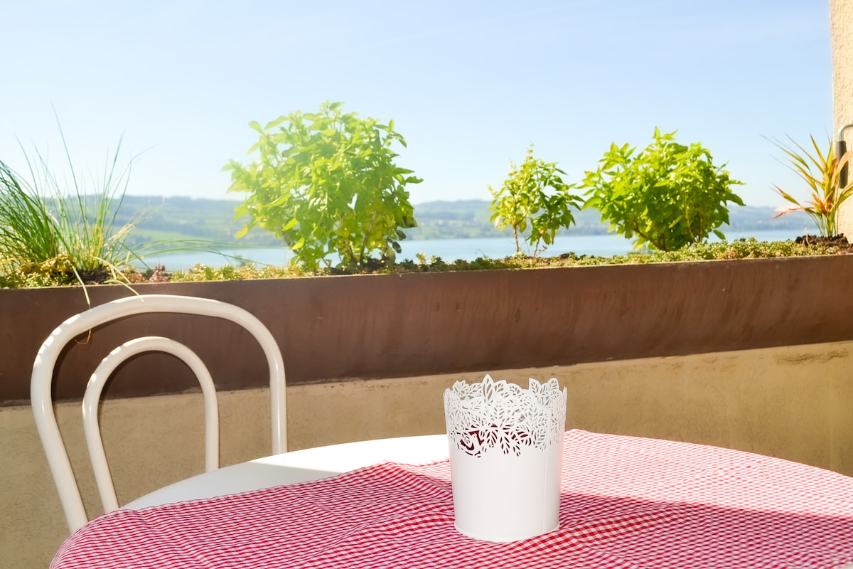 Sempach排名前1 ! 這間3.5間客房的複式公寓配有免費停車位和電動車充電站,位於Sempach的稍高位置(距離湖泊2分鐘! ) ,提供您放鬆住宿所需的一切。 亮點是直接俯瞰森帕赫湖的獨特、美妙景色,保證令人難忘的日落。 從所有房間,房客都可以一覽無遺地俯瞰湖景。 客廳有2間臥室和1張沙發牀,最多可容納6人