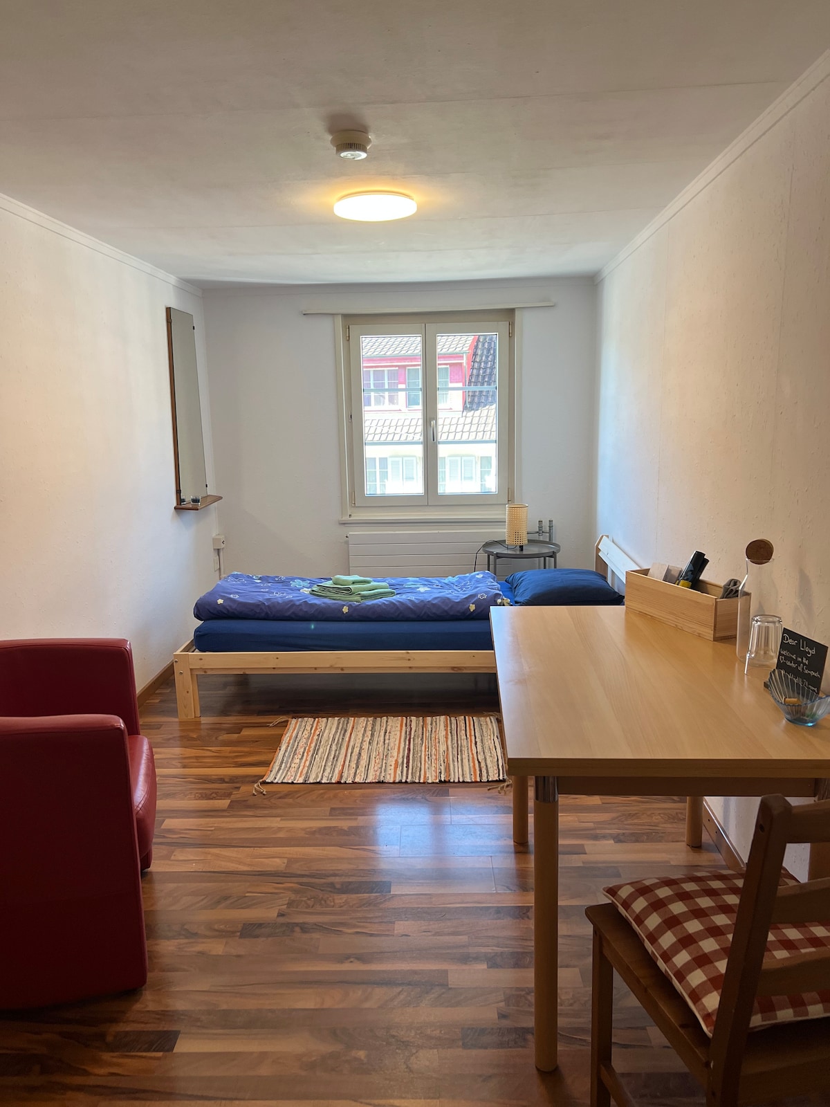 連棟房屋,3 層樓,空間寬敞,非常適合家庭和大型團體入住。共有 15 個床位,分為 1 張雙人床、13 張可組合的單人床,以及 3 間浴室,可根據團體大小進行分配。無論如何,都會提供吹風機、洗衣機和烘乾機以及行李寄存空間。 房子附設2個停車位,就在大花園旁邊。 靠近德國,如博登湖/萊茵河,讓您的住宿更加完美。